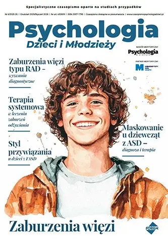 W tym wydaniu m.in: zaburzenie więzi typu RAD, styl przywiązania u dzieci z FASD, terapia systemowa w leczeniu zaburzeń odżywiania, maskowanie u dziewcząt z ASD a trudności w relacjach rówieśniczych, dzieciństwo wyspowe.